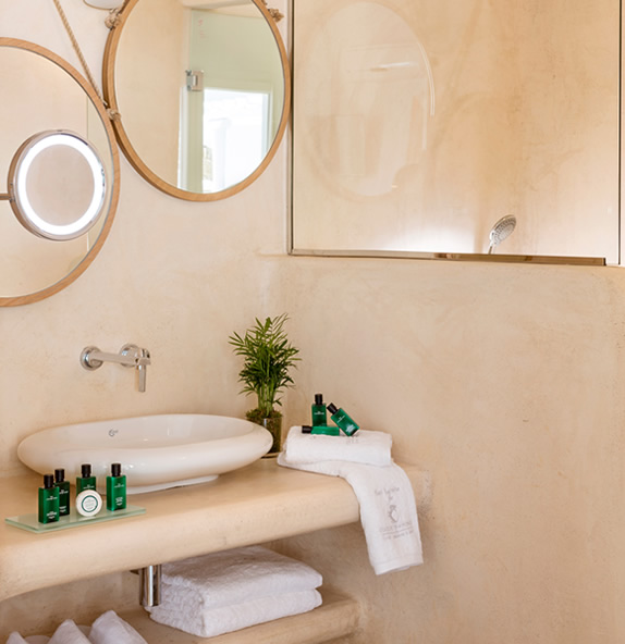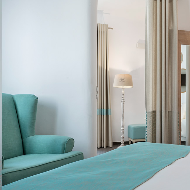 The interior design of the rooms focuses on curved lines, avoiding angles, creating an atmosphere which suggests both the tradition and the general feel of the island, with references to memories of our childhood.