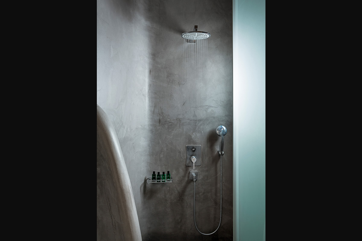 Rather than installing bathtubs in the bathrooms, we have opted for the traditional Mykonian construction technique of cementing, using mud from the local soil combined with a mixture found in the trade.